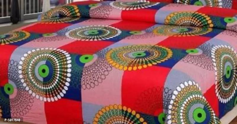Color: Multicoloured, Fabric: Polycotton, Design Type: Bedsheet, Set Content: 1 Bedsheet + 2 Pillowcovers, Length: 90.0 (in inches), Width: 90.0 (in inches), Contains- It Has 1 Piece Of Bedsheet With 2 Pillow Covers, Pillow Cover Size :27*17 Please note: product color and size may slightly vary due to photographic lighting sources or your monitor settings. Print of Pillow Covers matches with the Bed Sheet, but print may be Slightly different from the picture shown
